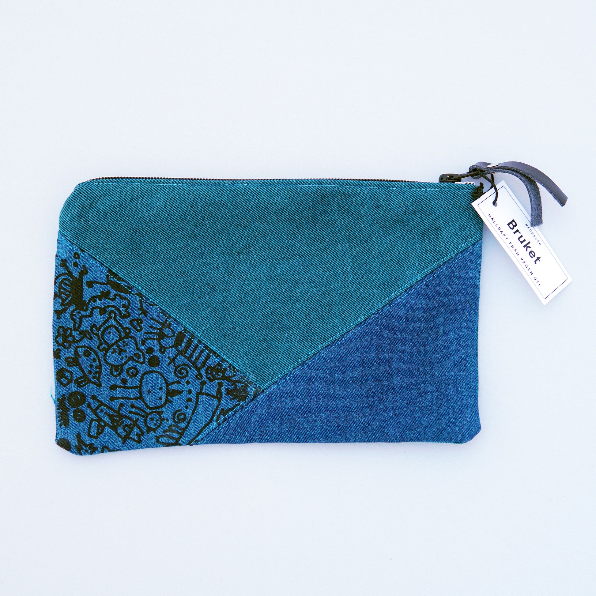 Our toiletry bags are made with care for both the environment and the people who create them. We give leftover jeans a new life and create a product that is both practical and stylish. Perfect for storing makeup, pens, or other small items that need to be kept organized. By choosing our products, you contribute to a more sustainable future and support the development of our participants. 💚